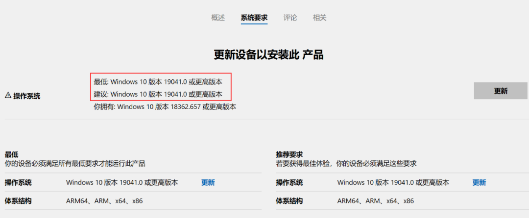 这里需要提醒大家的是,安装Windows File Recovery操作系统要求Windows 10版本19041.0或更高版本,如果你的系统版本过低会导致安装失败,跳出以下提示:
