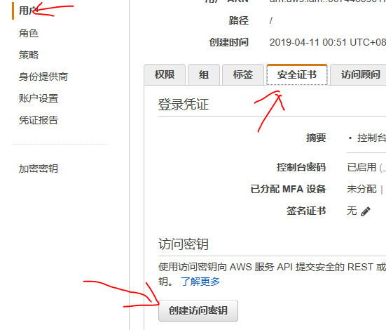 3.Linux下连接S3前,需要先获取到AWS的IAM的accessKey 和secretKey,那么获取方式是:
