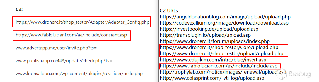 (1)在基础设施上,有与Lazarus关联的C2(www.dronerc[.]it ,www.fabioluciani[.]com ),且使用的url有很大相似性: