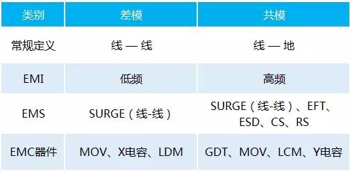 ➢ 从EMC器件的角度考虑,MOV、X电容、差模电感属于差模器件,共模电感、Y电容、ESD器件属于共模器件。