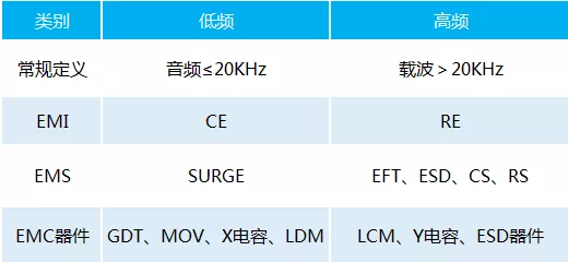 ➢ 从EMI的角度考虑,CE(传导)属于低频,RE属于高频;