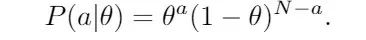 先写下该案例中的Bayes定理:想通过观察到的数据求出偏差的概率θ,用到了Bayes定理的连续形式: