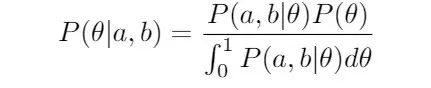 如果先验偏差具有分布β(x,y),数据出现a个正面和b个反面,得到:
