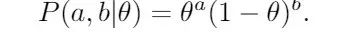 随着θ在[0,1]之间的变化,获得一个分布函数P(a,b|θ)。接下来,要做的是将它乘以一个常数,把它当作是概率分布。