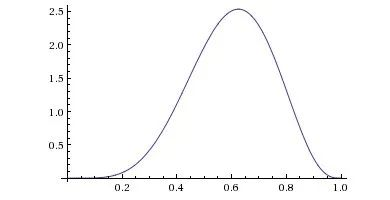 在这种情况下, 3个正面和1个背面的结果更新为概率分布是β(5,3):