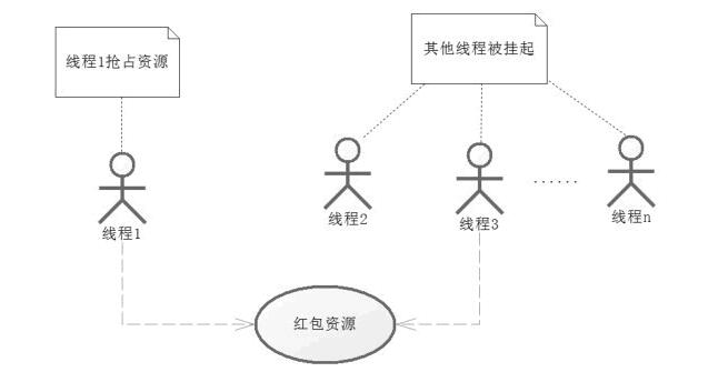 于是频繁挂起,等待持有锁线程释放资源,一旦释放资源后,就开始抢夺,恢复线程,周而复始直至所有红包资源抢完。试想在高并发的过程中,使用悲观锁就会造成大量的线程被挂起和恢复,这将十分消耗资源,这就是为什么使用悲观锁性能不佳的原因。