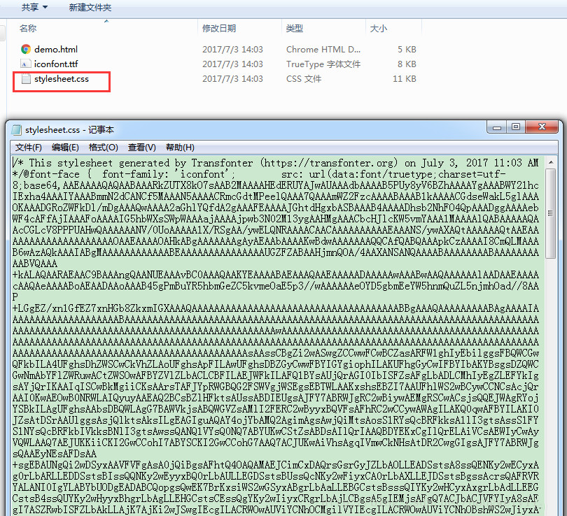 点击下载,得到转换后的压缩包,名为transfonter.org-开头。解压可以得到如下图的几个文件: