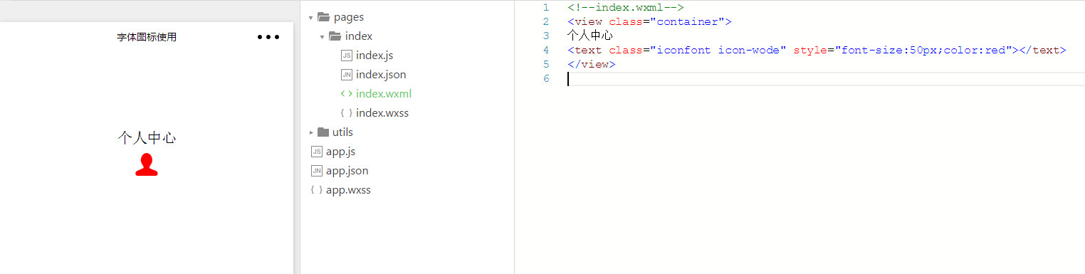 3--在index.wxml中使用字体图标。代码如下: