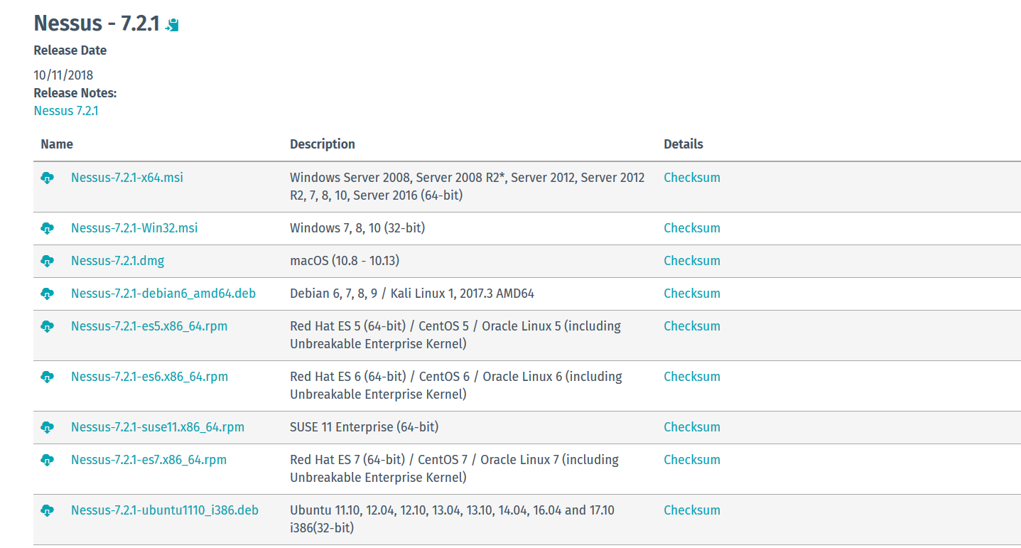 (1)从https://www.tenable.com/products/nessus/select-your-operating-system上下载对应操作系统版本的nessus,结果如下:(以Windows为例)