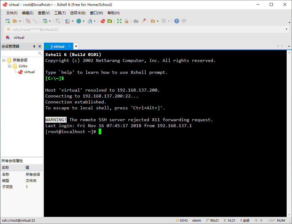 Xshell 是一个强大的安全终端模拟软件,它支持SSH1, SSH2, 以及Microsoft Windows 平台的TELNET 协议。Xshell 通过互联网到远程主机的安全连接以及它创新性的设计和特色帮助用户在复杂的网络环境中享受他们的工作。