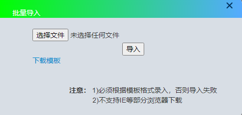 <span >1)必须根据模板格式录入,否则导入失败</br></span>