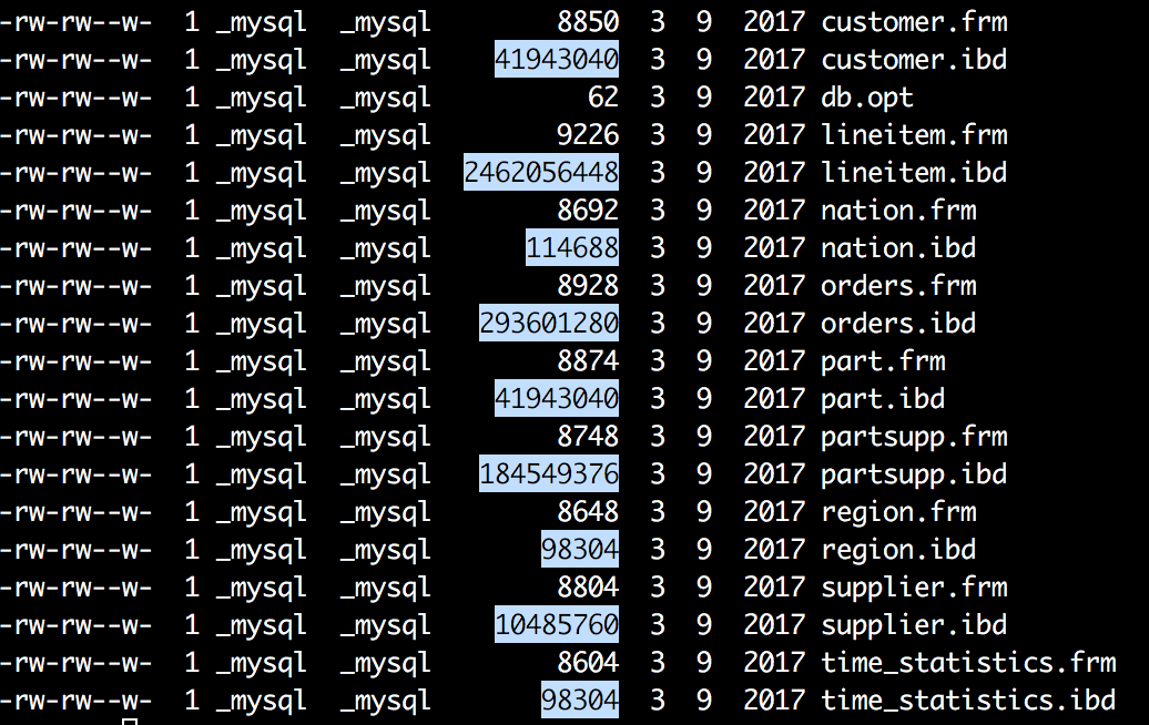 lineitem表的数据行数为600多万,B+树高度为3,customer表数据行数只有15万,B+树高度也为3。可以看出尽管数据量差异较大,这两个表树的高度都是3,换句话说这两个表通过索引查询效率并没有太大差异,因为都只需要做3次IO。那么如果有一张表行数是一千万,那么他的B+树高度依旧是3,查询效率仍然不会相差太大。