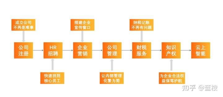 的企业应用和服务,并通过线上方式实现快速的交易与交付。例如,云上公司注册服务,