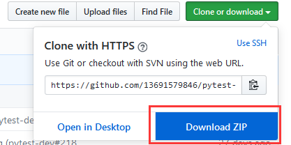 2.下载插件源码到本地,git clone https://github.com/13691579846/pytest-html 或者按照下图方法下载