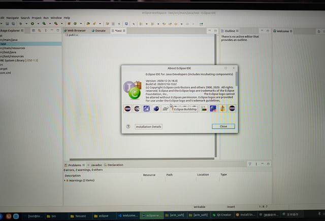 针对IDE系统,Eclipse及VSCode官方支持aarch,相对顺利。但目前主流的Idea系列因官方没有担供ARM版,解包运行时,提出要JDK11(下载了JDK11 ARM版,没有安装成功),没有再继续,如果解决JDK11的问题,应该是可以正常运行的。