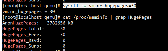 设置完成后,当前系统巨型页的数量变为30,设置永久有效,如果重启系统,该值保持不变