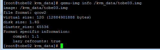 qemu-img info /kvm_data/tobe02.img//查看虚拟磁盘格式 qemu-img create -f raw /kvm_data/tobe02_2.img 2G //创建2G的raw格式磁盘,-f指定格式