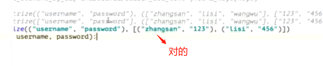@pytest.mark.parametrize(("username","password"),[("zhangsan","123"),("lisi","456")])