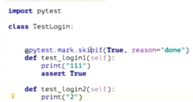 7跳过函数@pytest.mark.skipif(True,reason="done")