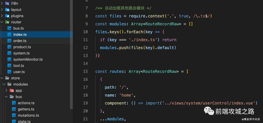 利用 webpack 的require.context功能,极大便利了我们加载相同功能的 ES 模块,例如批量加载 vuex 子 module,加载路由,加载全局组件,加载插件,只需要类似下面这样简单处理一下即可。