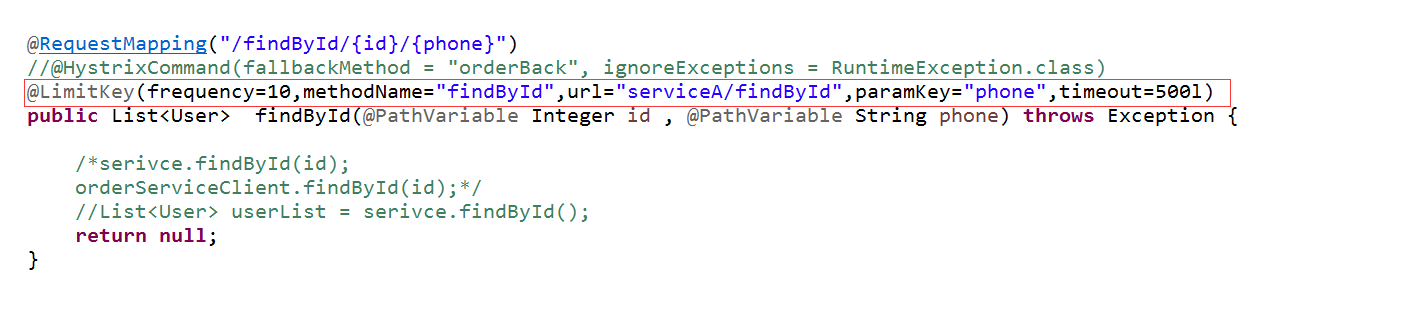 import com.zhouixi.serviceA.annotation.LimitKey;