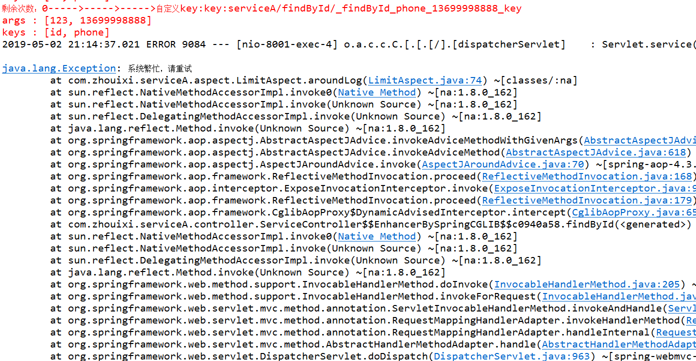System.err.println("剩余次数:"+limitMap.get(sb.toString())+"----->----->----->自定义key:"+sb.toString());