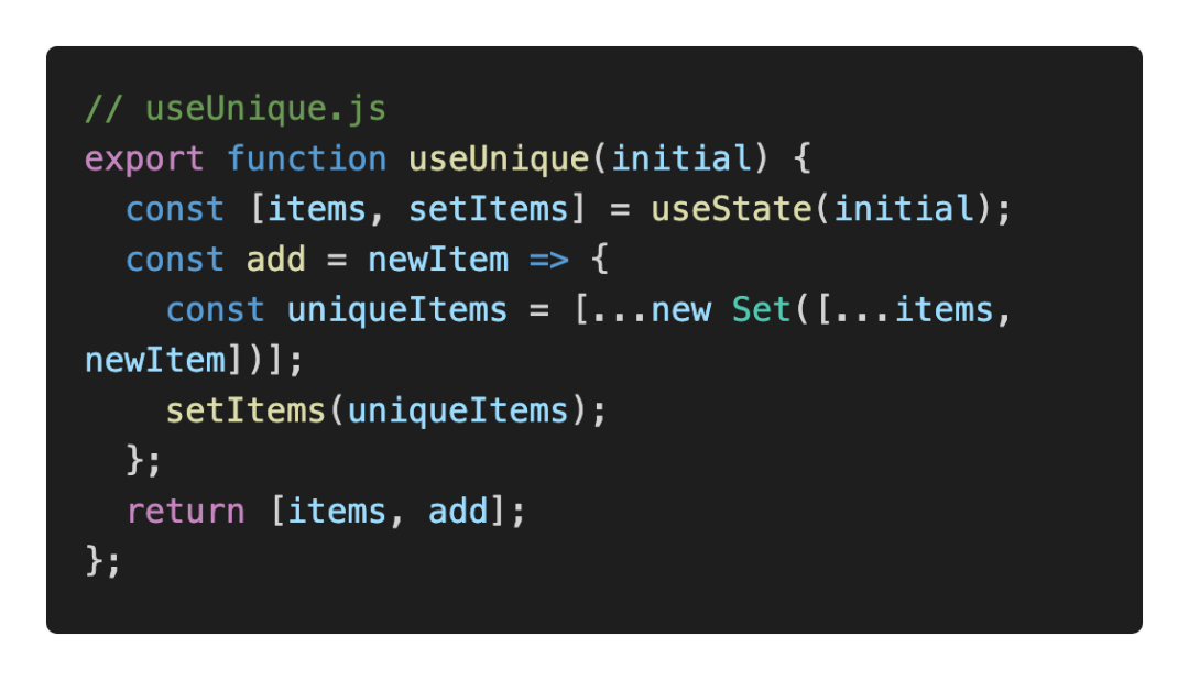 新的自定义HookuseUnique()负责保持项目的唯一性: