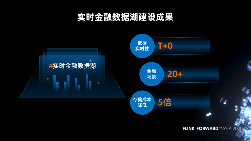 通过数据湖的不断建设,整体也取得了一系列成果。我们现在是 T+0 的数据时效性,已经支持 20+ 的金融产品,存储成本可以降低 5 倍。