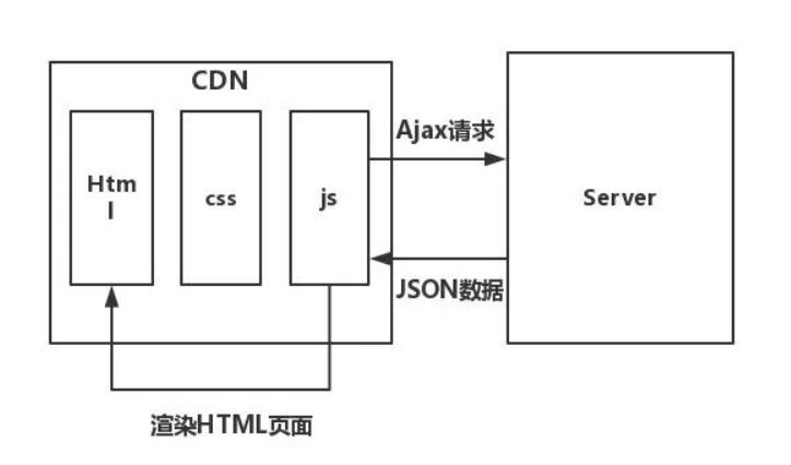 接口返回Json数据,页面解析Json数据,通过Dom操作渲染页面;