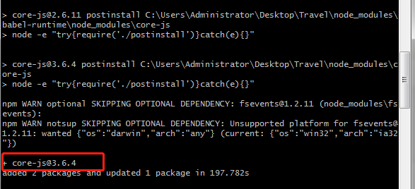 npm WARN deprecated core-js@2.6.11: