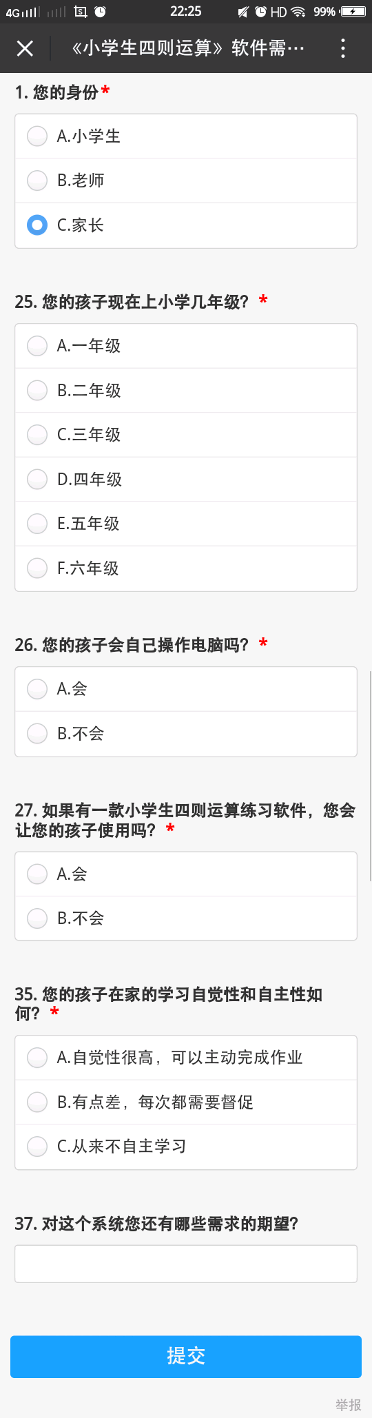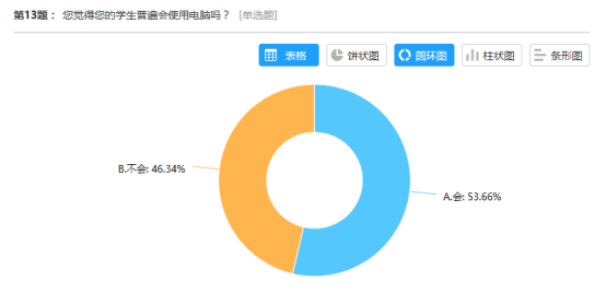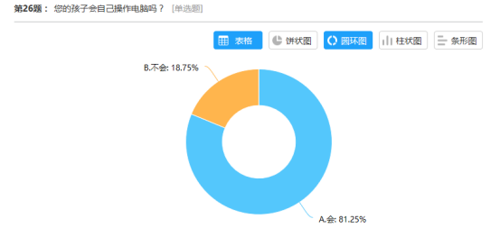 a.填问卷的家长中自己的孩子1~6年级的都有,大部分孩子会自己操作电脑,有少部分还不会。而且大部分家长愿意让孩子使用小学生四则运算软件。