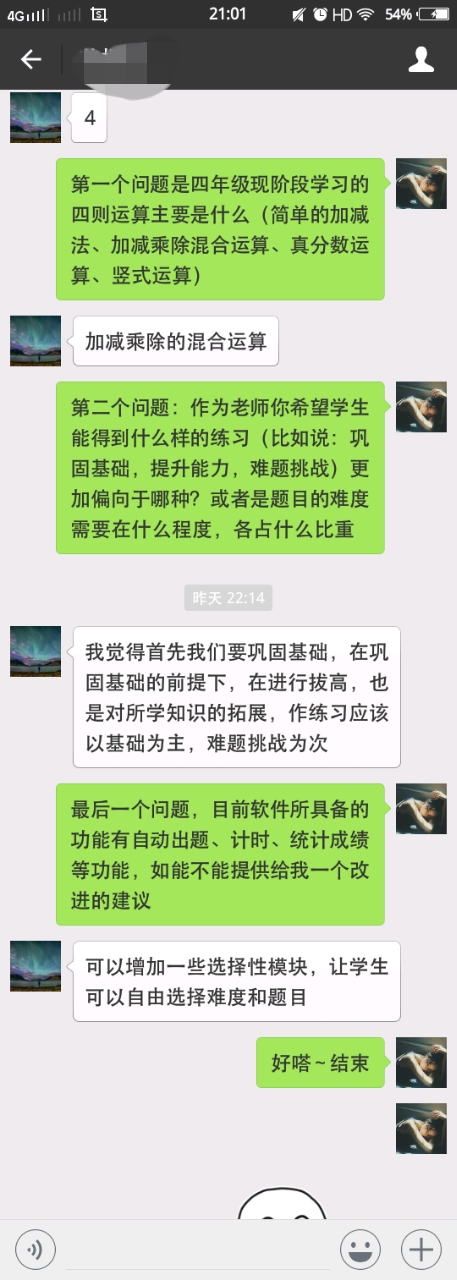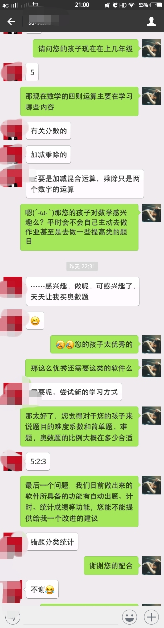 我们通过微信采访了三位真实用户,两名小学老师(一位小学辅导班老师、一位在职小学老师)和一名家长(哥哥),以下是访谈内容: