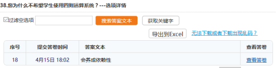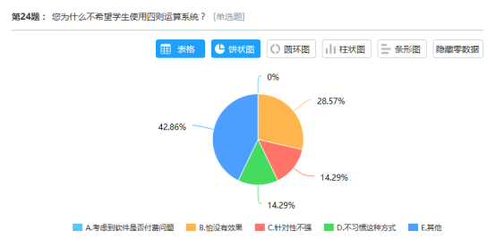 e.少数不愿意让学生使用四则运算软件的老师主要的顾虑是软件付费问题、对软件效果的不确定性和害怕孩子染上网瘾。