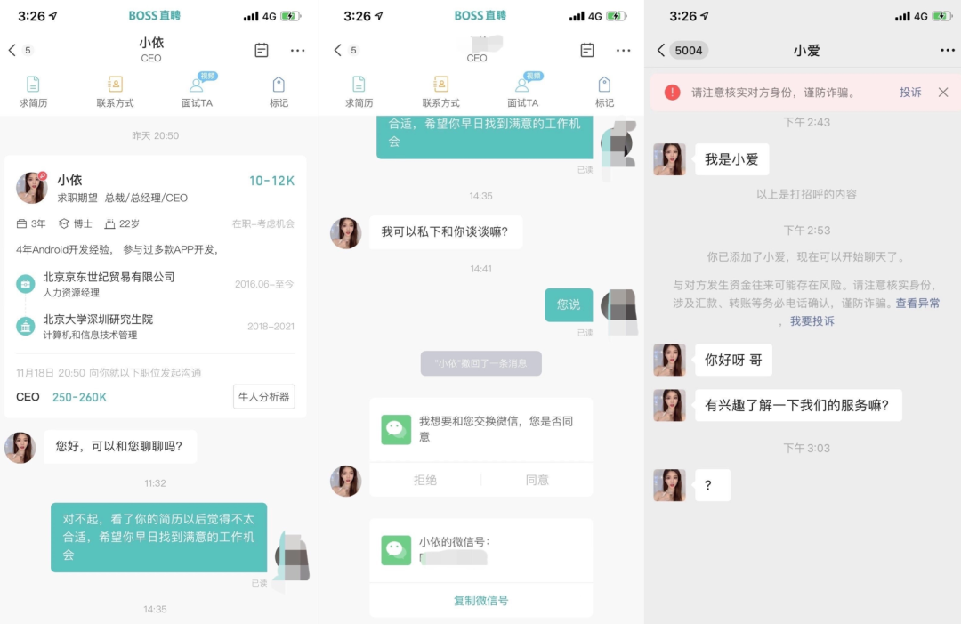 不过,也是出乎意料,BOSS直聘,这么一个互联网招聘平台,竟然也能跟情色陷阱、拉皮条扯上关系。