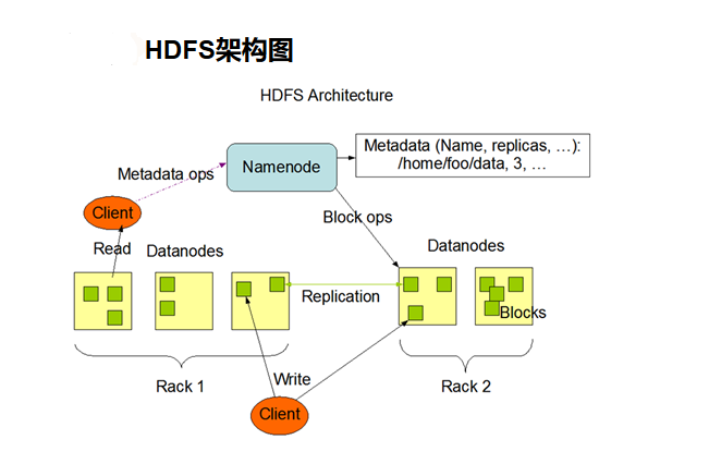 namdenode不存储具体块数据,只存储元数据信息;datanode用于负责存储块数据。