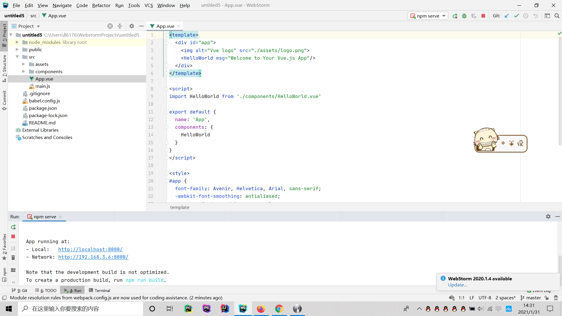 这里我们选择的时候webstorm。在file处选择新建项目之后选择新建vue的项目。可能构建的时间有些长不要着急稍微等一会马上就好。