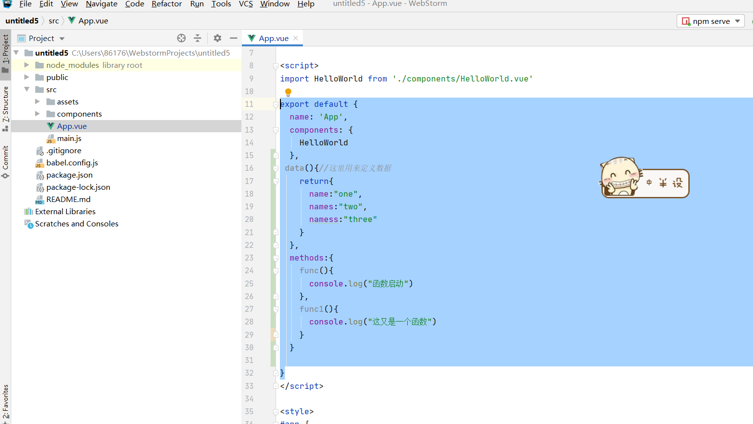 在vue的构成中也有函数这个函数同样是在模板里。他是这个样子的。