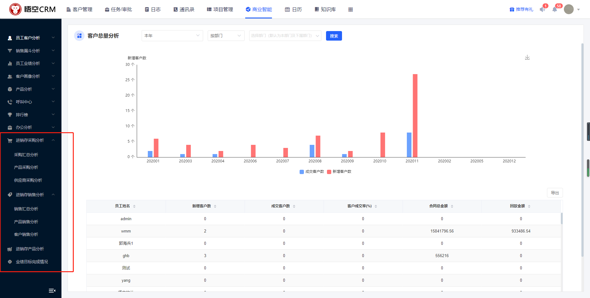 (2)商业智能新增进销存采购分析、销售分析、产品分析,图表数据一目了然,帮助企业实现信息化管理。
