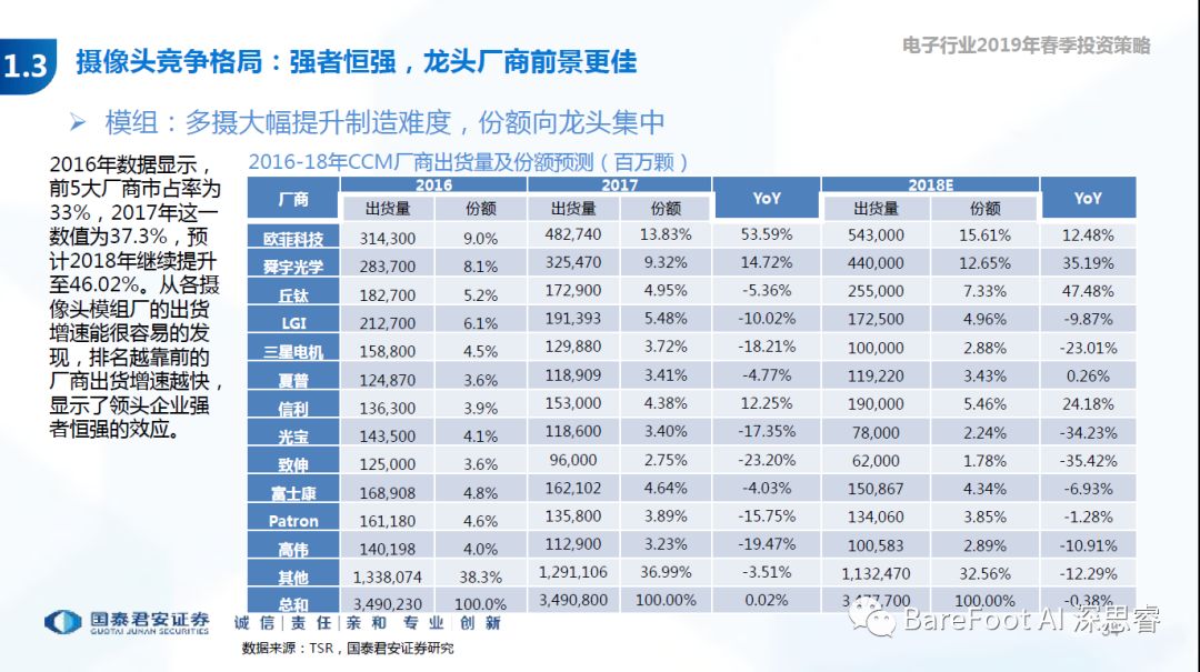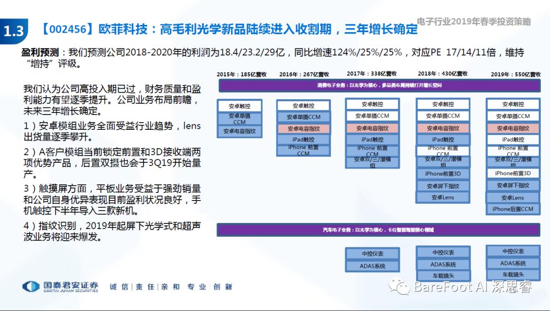 睿点评 - 欧菲光全面开花,三摄,屏下指纹,3D Sense等等。