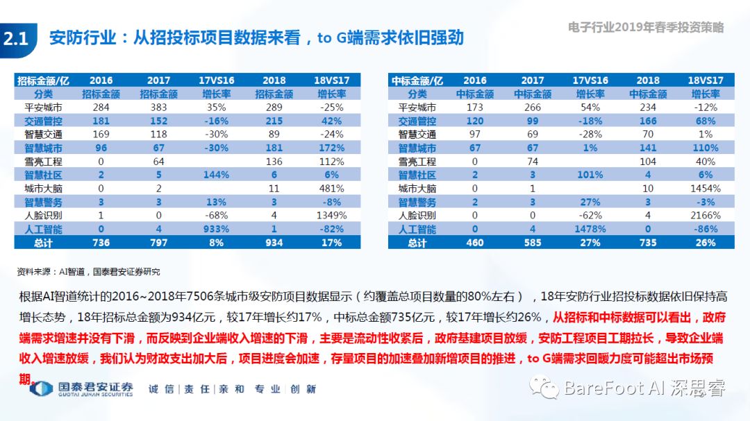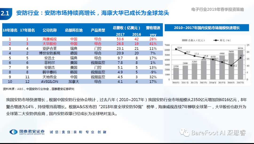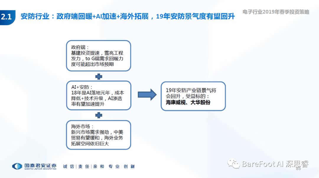 睿点评 - 经过2018年的行业低谷,在政府,AI,和海外市场的驱动下,安防在2019年有望迎来大增长。