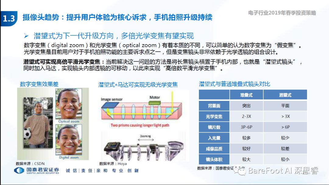 睿点评 - 摄像头持续成为厂商竞争的主要领域。三摄,多摄,潜望式多倍光学变焦,以及3D Sense的导入,如后置ToF,是手机成为了感知外部世界和建模的工具。