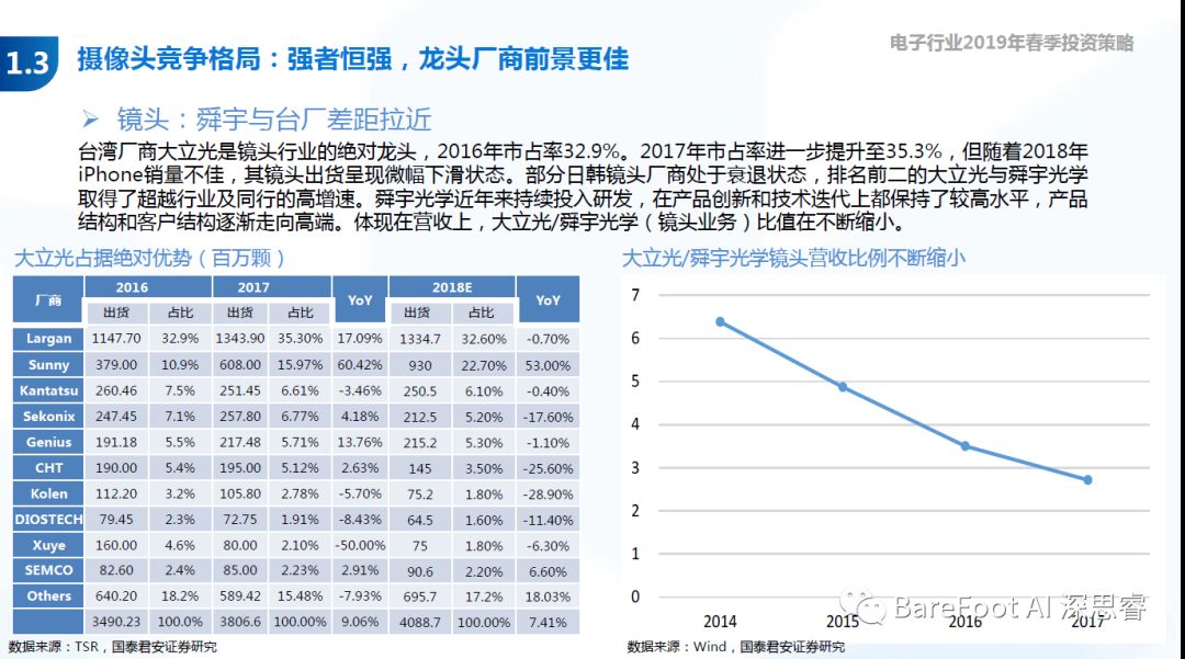 睿点评 - 看好欧菲科技,看好舜宇光学。