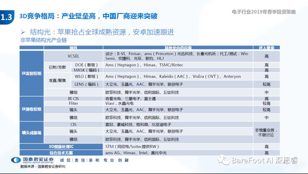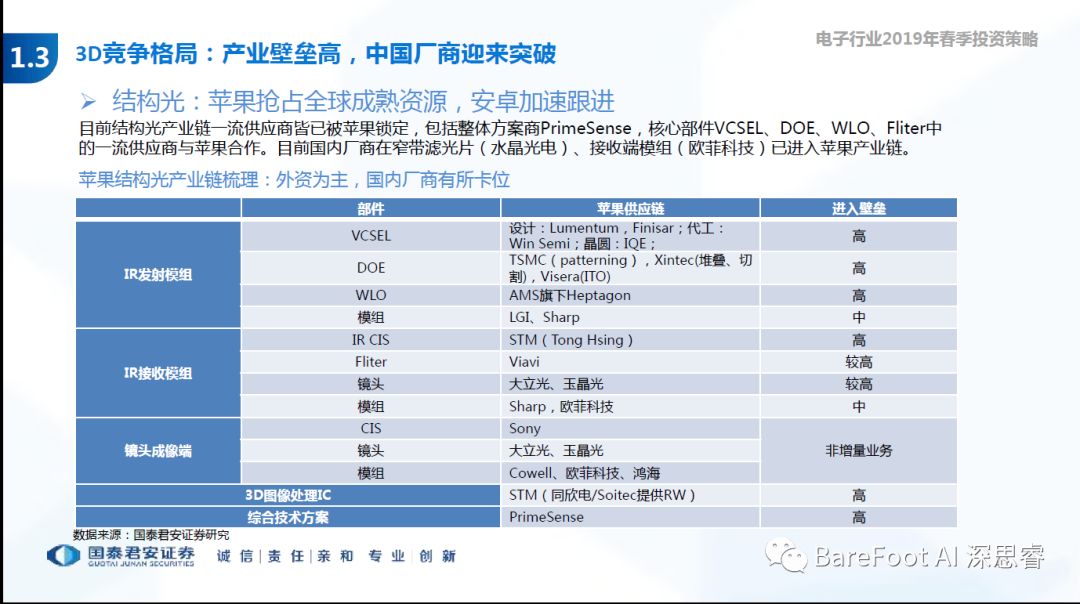 睿点评 - 非苹果结构光产业链,国内厂商强在应用端的模组整合。