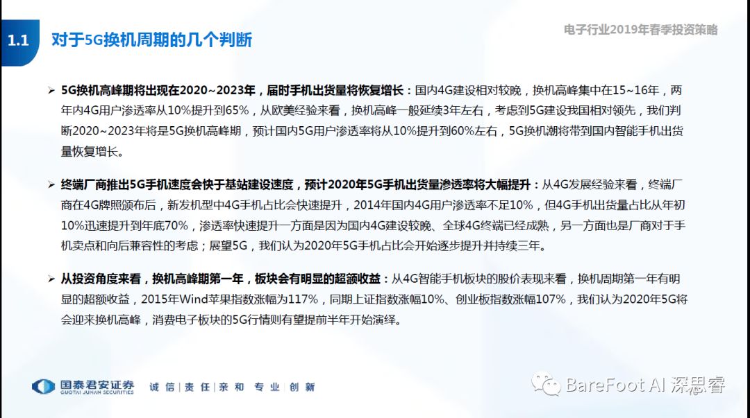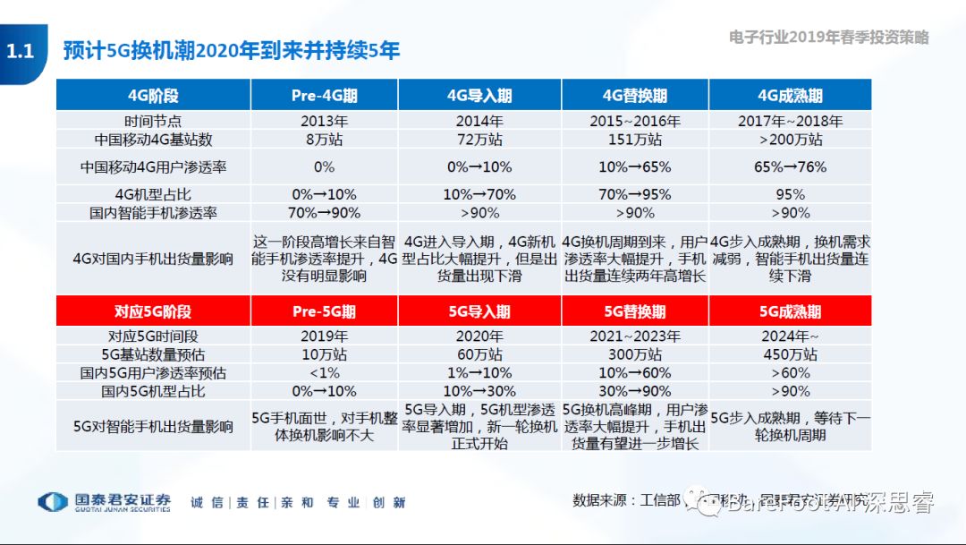睿点评 - 5G我国有先发优势,预计从2020年开始,将进入5G换机周期。