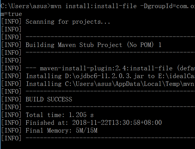 -DartifactId=ojdbc6 -Dversion=11.2.0.3 -Dpackaging=jar -Dfile=D:\ojdbc6-11.2.0.3.jar -DgeneratePom=true