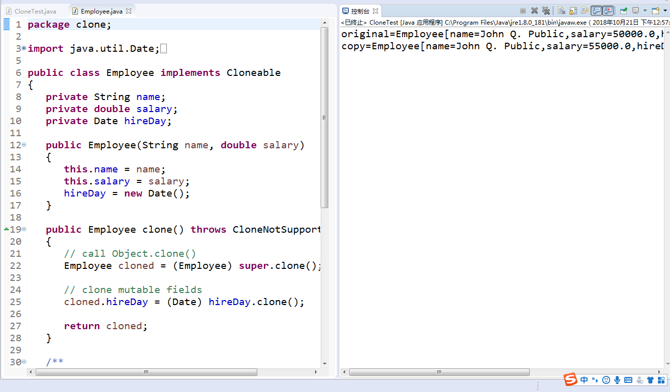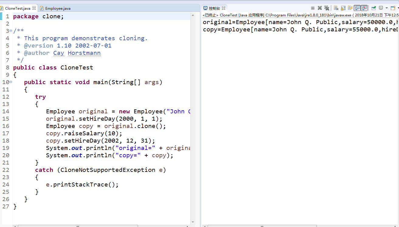 通过第六章的学习,明白了继承与接口实现的区别,两者最大的区别就是,类只能继承一个父类,一个类可以实现多个借口,类通过使用关键字implements声明自己实现一个或多个类,如果一个非抽象类实现了某个借口,那么这个非抽象类必须重写该接口的所有方法。使用clone的方法,可以有别于直接复制,可以对复制的内容重新定义方法等,通过对示例代码的测试,对第六章内容有了进一步的理解。