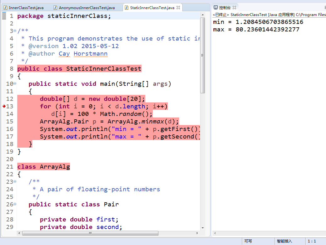 15 ArrayAlg.Pair p = ArrayAlg.minmax(d);
