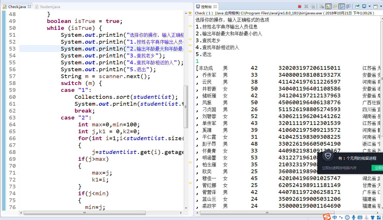 l 在elipse IDE中调试运行教材257页-258页程序6-9,结合程序运行结果理解程序;