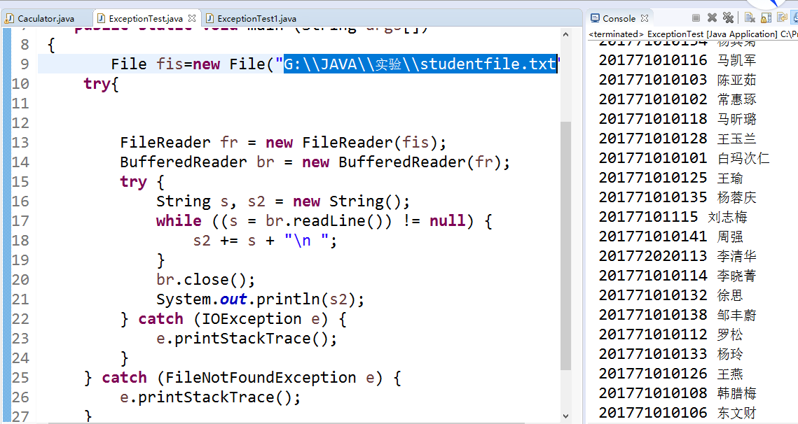 9 File fis=new File("G:\\JAVA\\实验\\studentfile.txt");