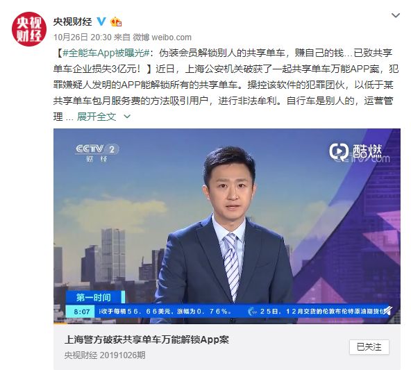 前几天,据央视新闻报道,上海公安机关接到共享单车企业报案,随后破获了一起共享单车万能解锁 App 案,犯罪嫌疑人开发的 App 软件能解锁所有的共享单车。